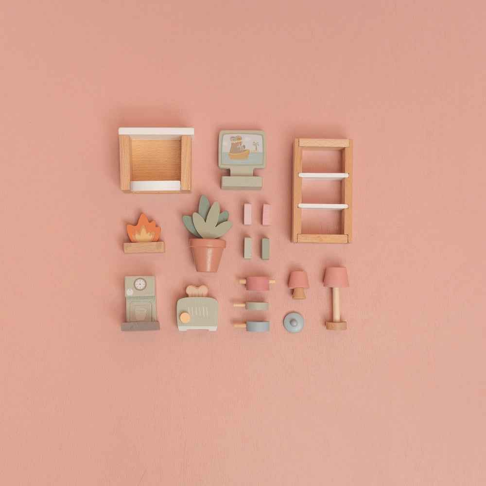 Merkmale des Holz-Zubehörsets für das Puppenhaus von Little Dutch: