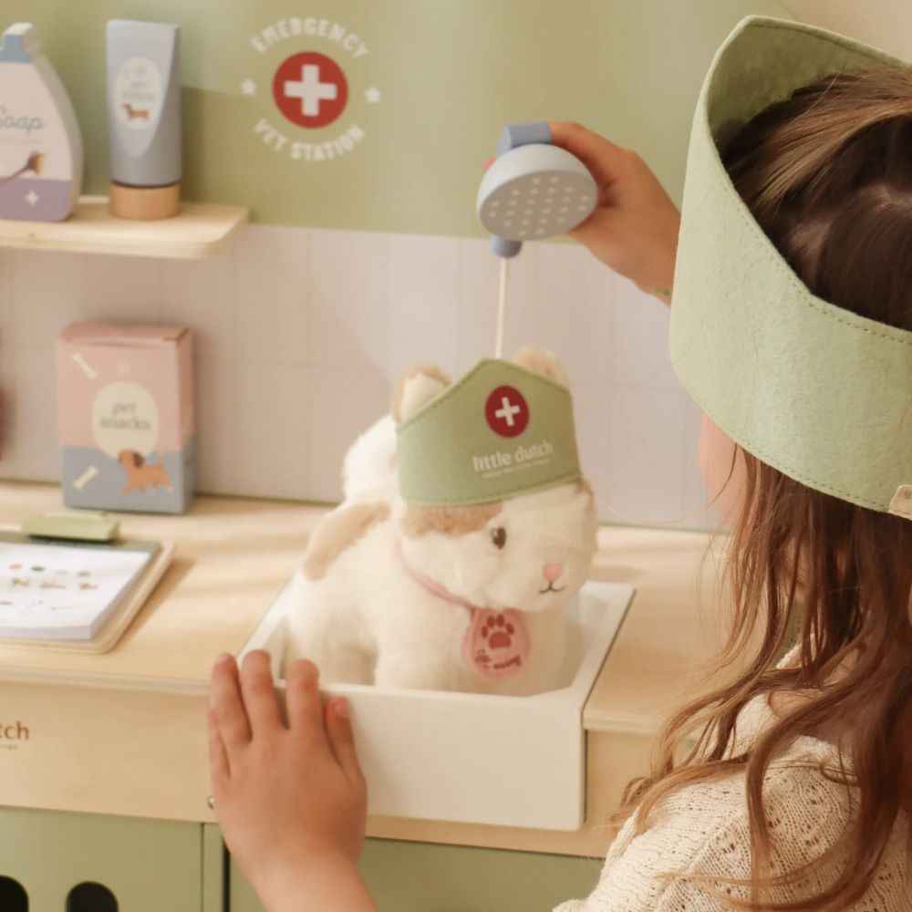 Träumt Ihr Kind davon, Tierarzt zu werden? Die hölzerne Tierarztpraxis von Little Dutch ist ein einzigartiges Set, das Empathie fördert, Verantwortungsbewusstsein vermittelt und unvergesslichen Spielspaß bietet. Damit kann Ihr Kind in die Rolle eines Tierarztes schlüpfen und sich um seine Plüschtiere kümmern, sie untersuchen, pflegen und belohnen. Es ist eine großartige Geschenkidee für 3-Jährige und ältere Kinder, die kreatives Rollenspiel lieben.