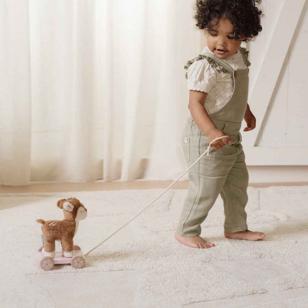 Willkommen in der zauberhaften Welt von Fairy Garden! Das Rehkitz mit Rädern von Little Dutch ist eine weiche, kuschelige Gefährtin, die Ihr Kind gerne auf eine märchenhafte Abenteuerreise begleitet. Einfach an der Schnur ziehen – und das niedliche Reh rollt auf seinem mit Blumen verzierten Holzwägelchen über den Boden. Das Spielzeug animiert zur Bewegung und unterstützt das Laufenlernen, wobei es gleichzeitig die Koordination und das Gleichgewicht fördert.