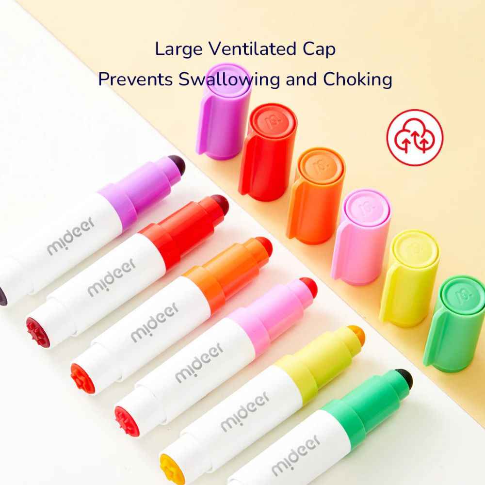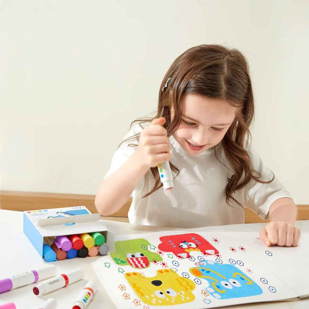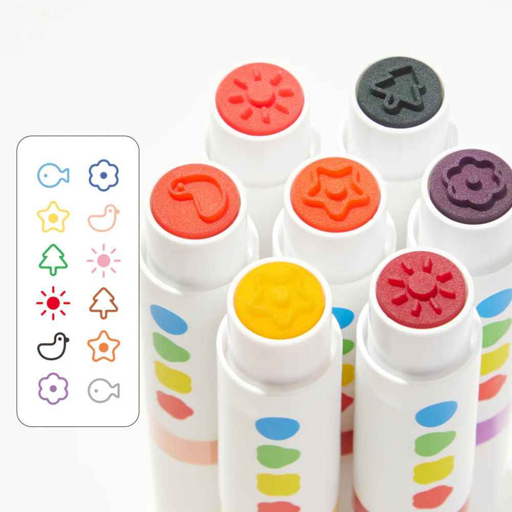 Wecken Sie Ihre Kreativität mit diesem einzigartigen und innovativen Malwerkzeug, das Stempeln und Ausmalen in einem vereint. Es wurde speziell für die Kleinsten entwickelt, Marker mit abgerundeter Spitze sicher und einfach zu verwenden und regt dazu an, neue künstlerische Möglichkeiten zu entdecken. Ideal für kreativen Spaß allein oder zum gemeinsamen Verbringen von Zeit mit der ganzen künstlerischen Familie. Ein zusätzlicher Vorteil? Er ist abwaschbar, sodass das Aufräumen nach dem Spielen kein Problem ist!