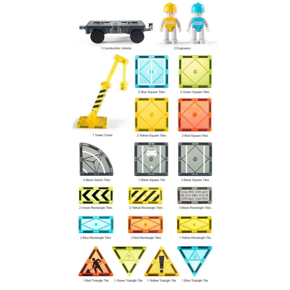 Die Bausteine verbinden sich durch starke Magnete leicht und stabil, sodass Kinder im Handumdrehen neue Bauwerke erschaffen und wieder umbauen können. Beim Spielen werden logisches Denken, Koordination und Feinmotorik gefördert – und das mit jeder Menge Spaß am Konstruieren und Entdecken.
