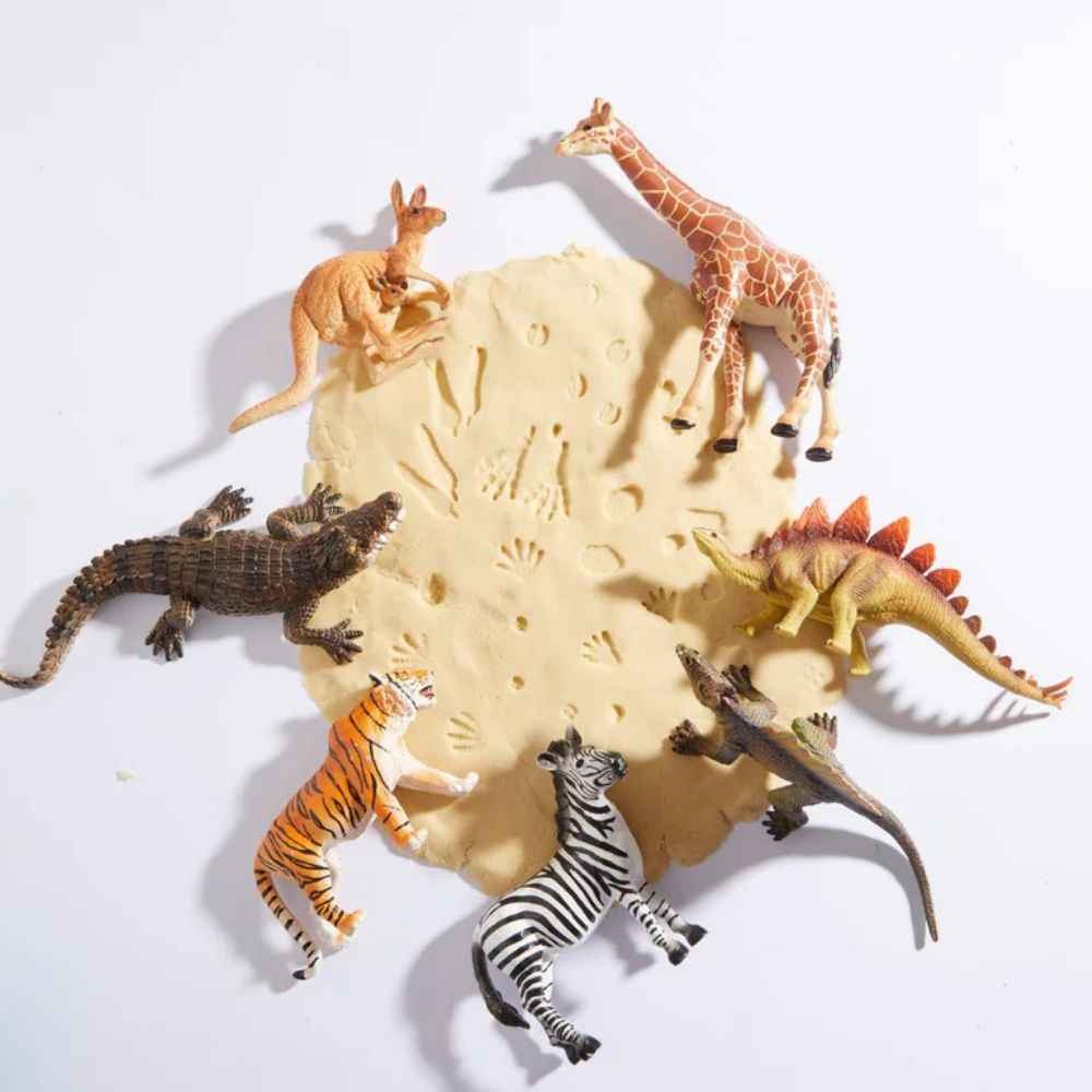 - Enthalten sind u. a.: Löwe, Elefant, Giraffe, Panda, Tiger, Hirsch, Bär, Zebra, Känguru und weitere Tiere