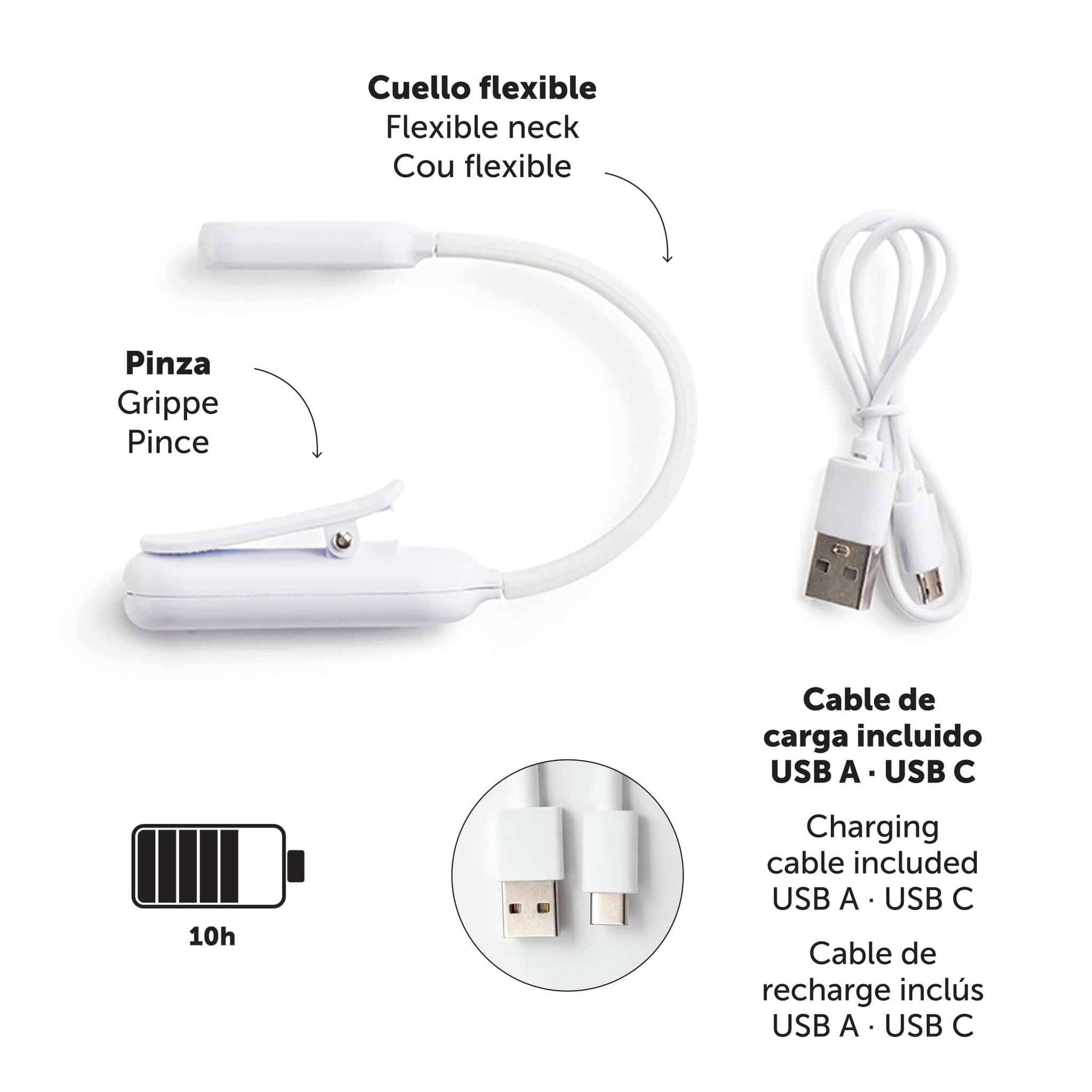 LED-Leselampe für Bücher mit USB-Anschluss von Miquelrius in der Ausführung: weiß