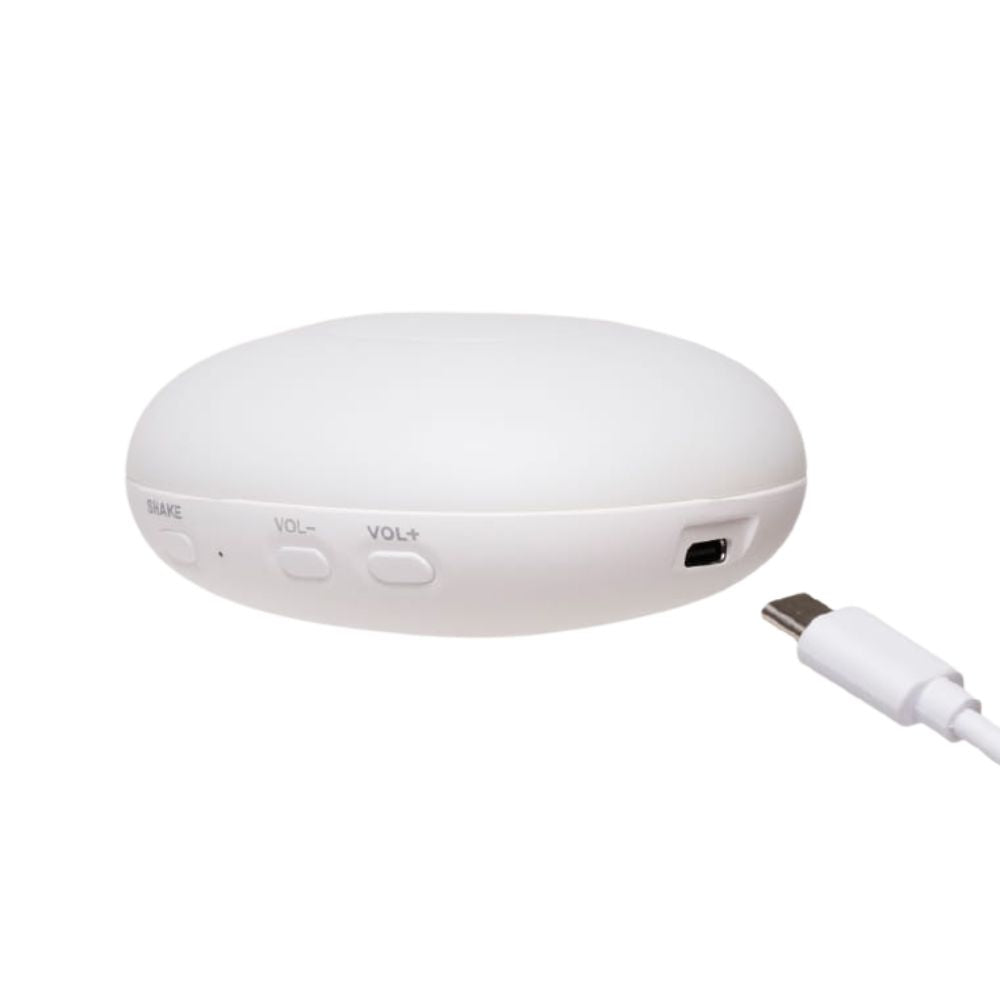 - Funktionen: Naturgeräusche und klassische Musik, Lautstärke- und Wiedergabedauerregelung, Sprachaufzeichnungsfunktion, bewegungsaktivierter Lampenmodus, 7 Lichtfarben, intelligenter Weinen-Detektor, USB-C-Aufladung, integrierter Akku mit Ladeanzeige.