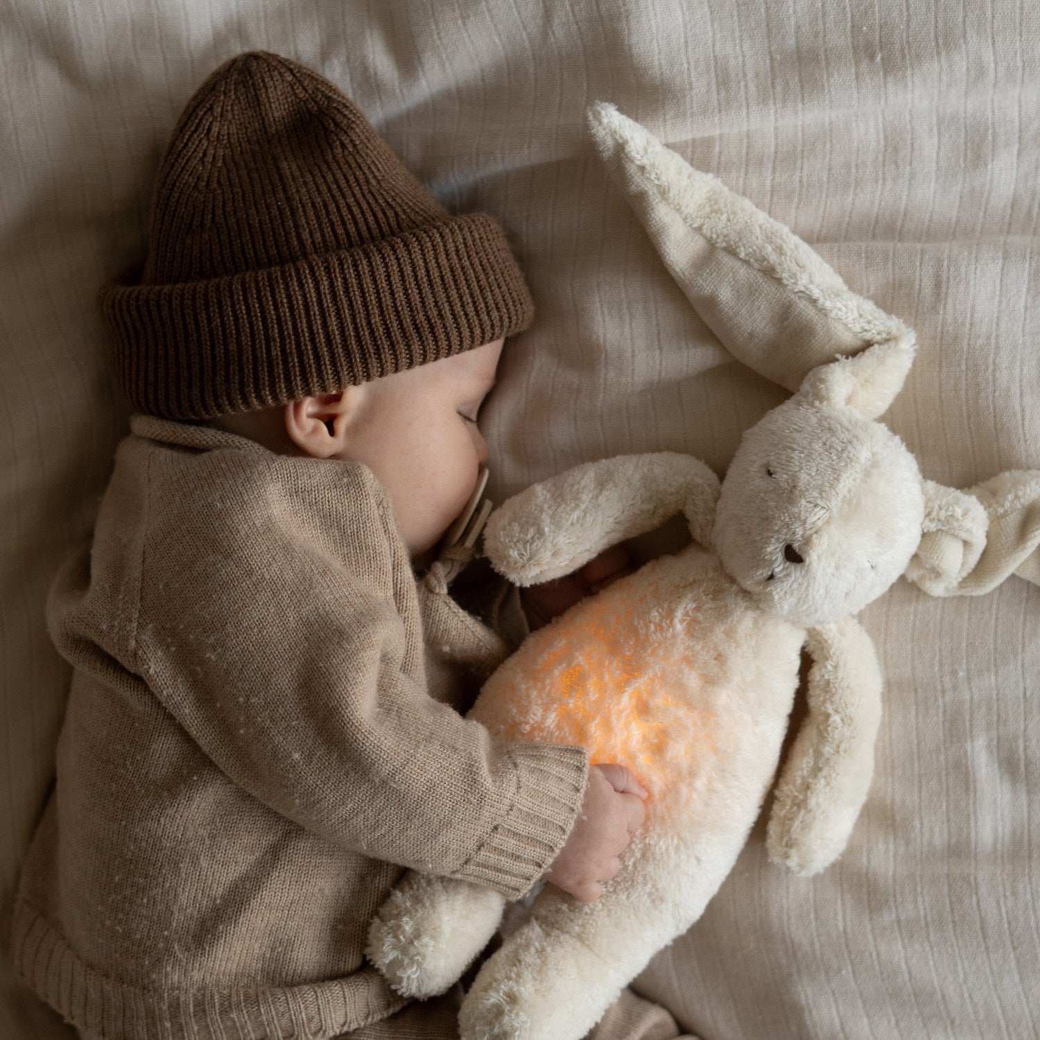 Der Summende Bär und das Summende Kaninchen MOONIE sind das perfekte Geschenk für alle Eltern, die ihrem Kind einen ruhigen und gesunden Schlaf ermöglichen möchten.