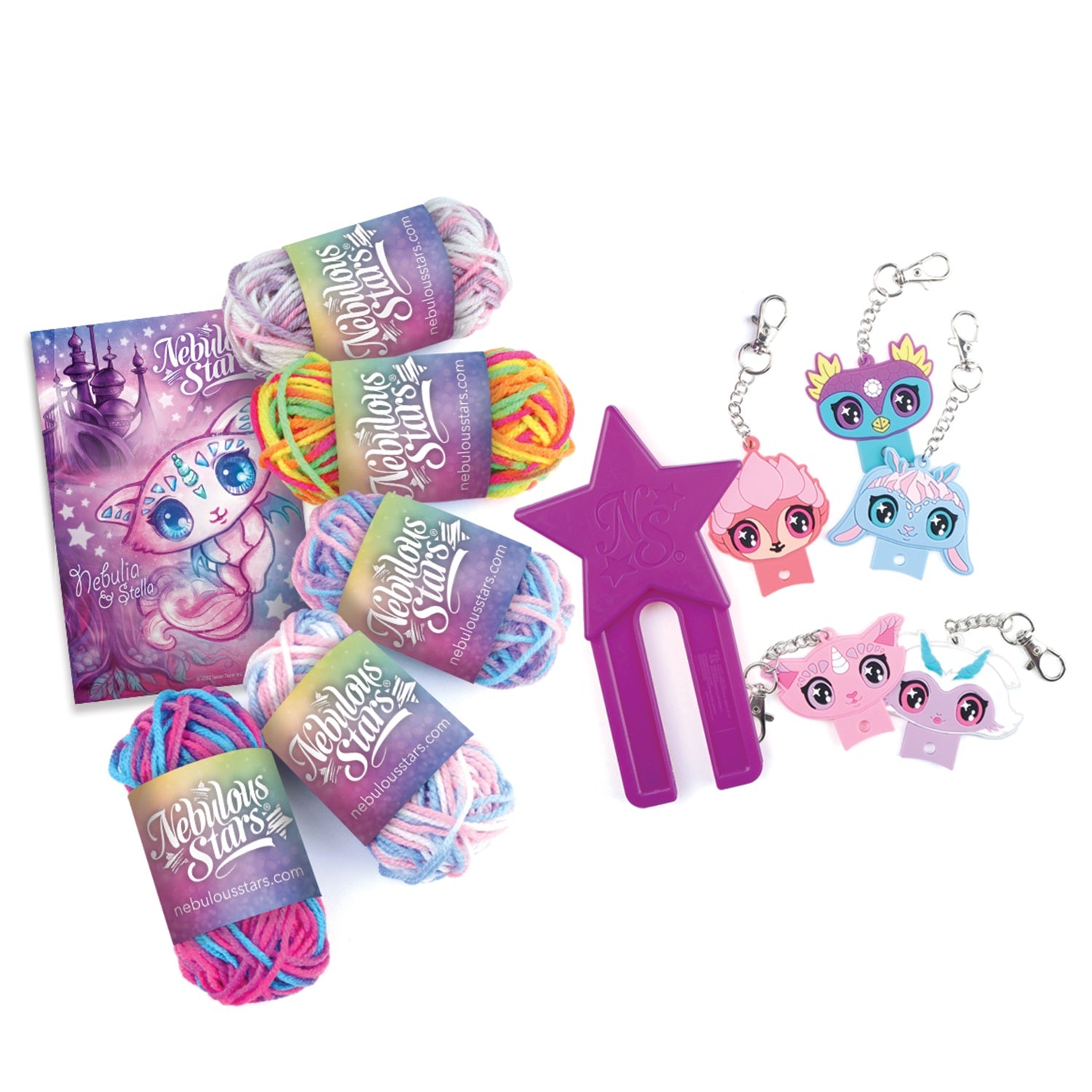 In der Box wartet auf Handarbeitsliebhaber ein Set aus Garn, einer Form für Pompons und Verschlüssen. Die Anhänger stellen Tiere dar, die die Heldinnen des magischen Landes Nebulous begleiten. Die selbstgemachten Anhänger haben schöne Farben. Sie schmücken jeden Rucksack, jede Tasche oder jedes Federmäppchen.