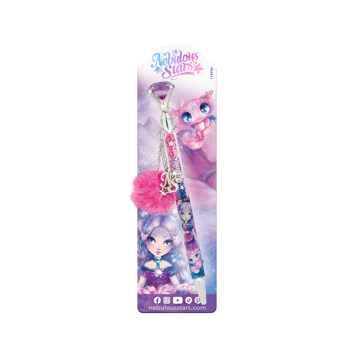 Wunderschöner Kugelschreiber, verziert mit einem prächtigen Kristall und Anhängern – einem Pompon und Buchstaben. Er ist praktisch und hebt sich gleichzeitig von anderen Gadgets ab. Er eignet sich hervorragend für die Schule und als Geschenk. Das modische Design und die Farbgebung erinnern an die magische Welt von Nebulous.