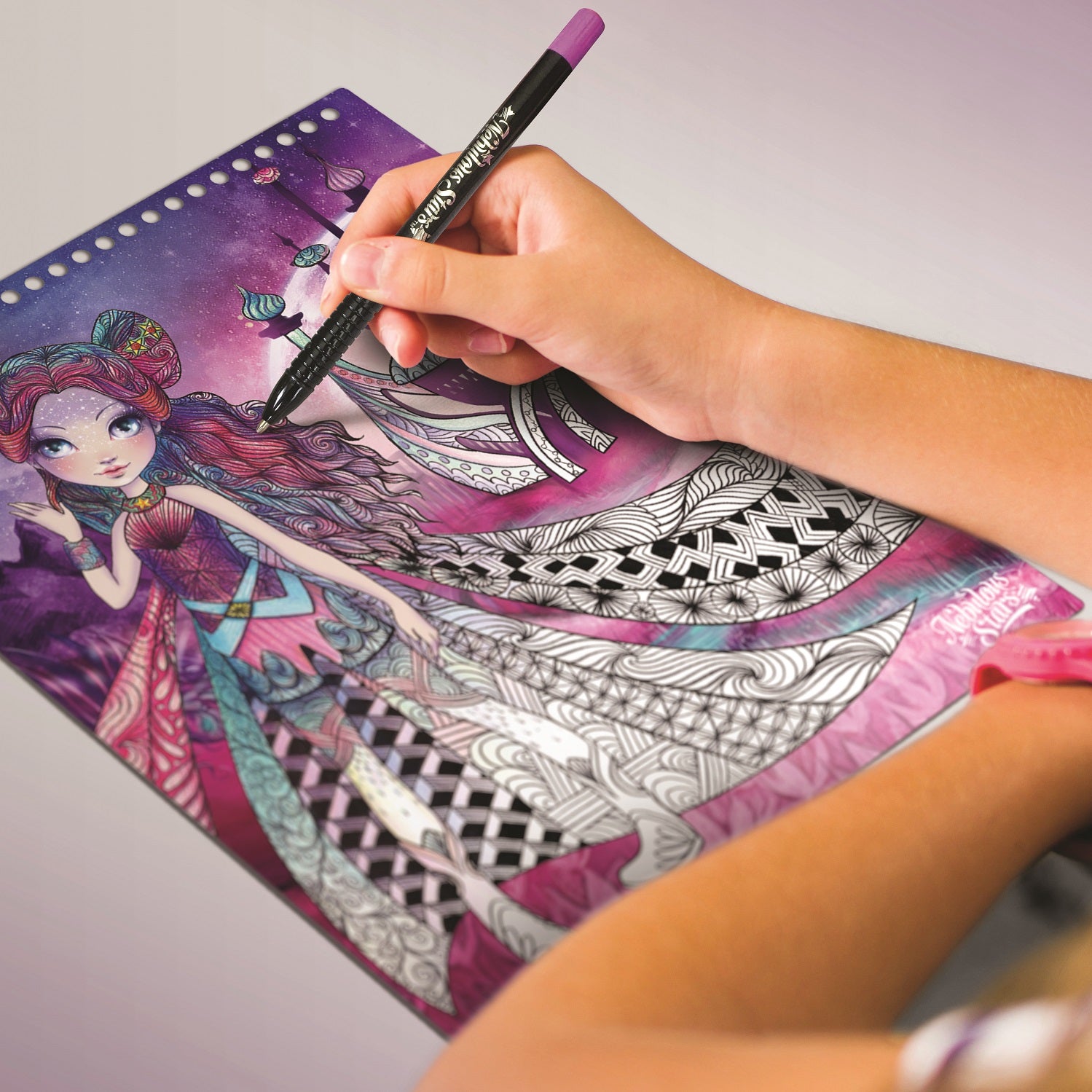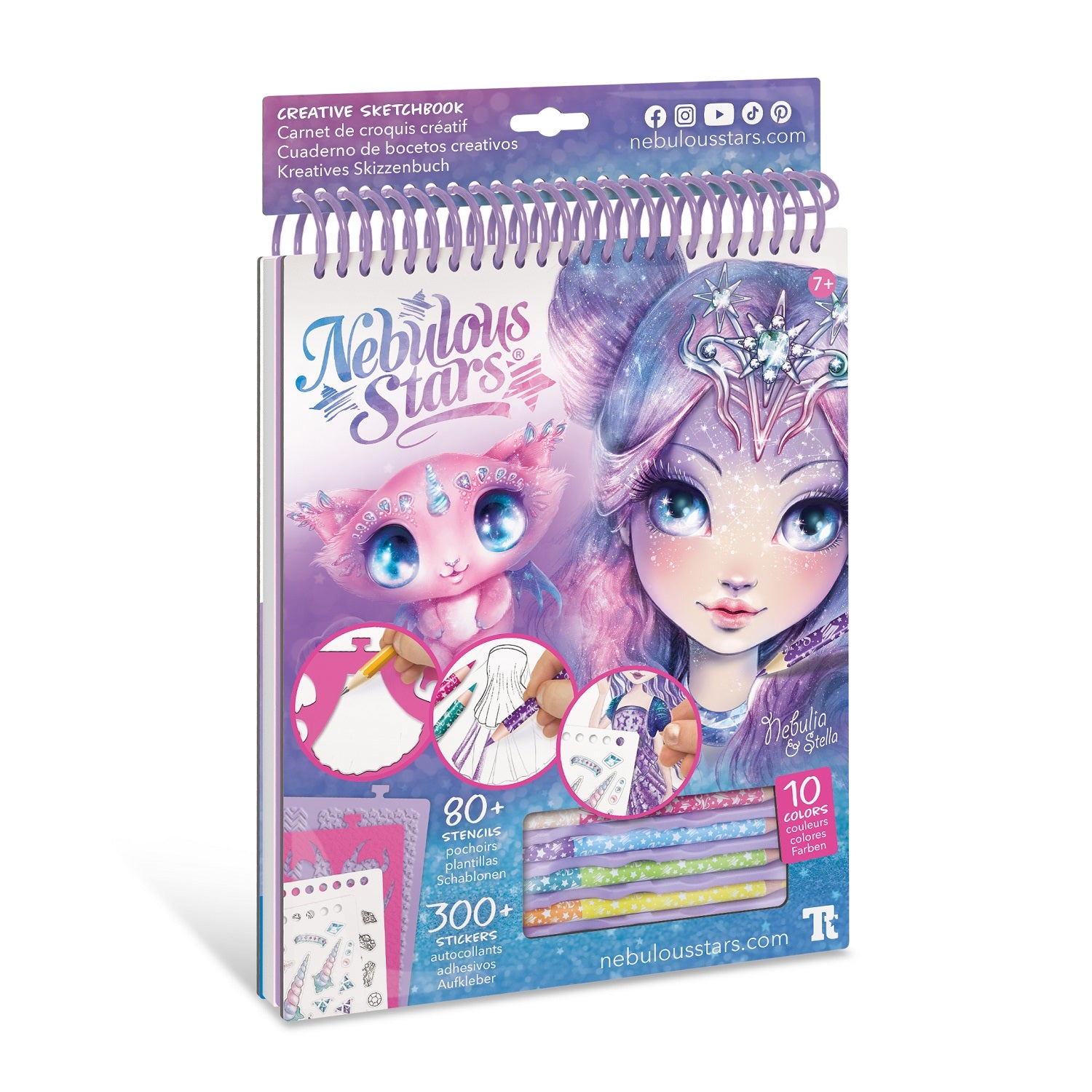 Skizzenbuch mit Buntstiften, Schablonen und Aufklebern Nebulous Stars in der Version: Nebulia Größe M