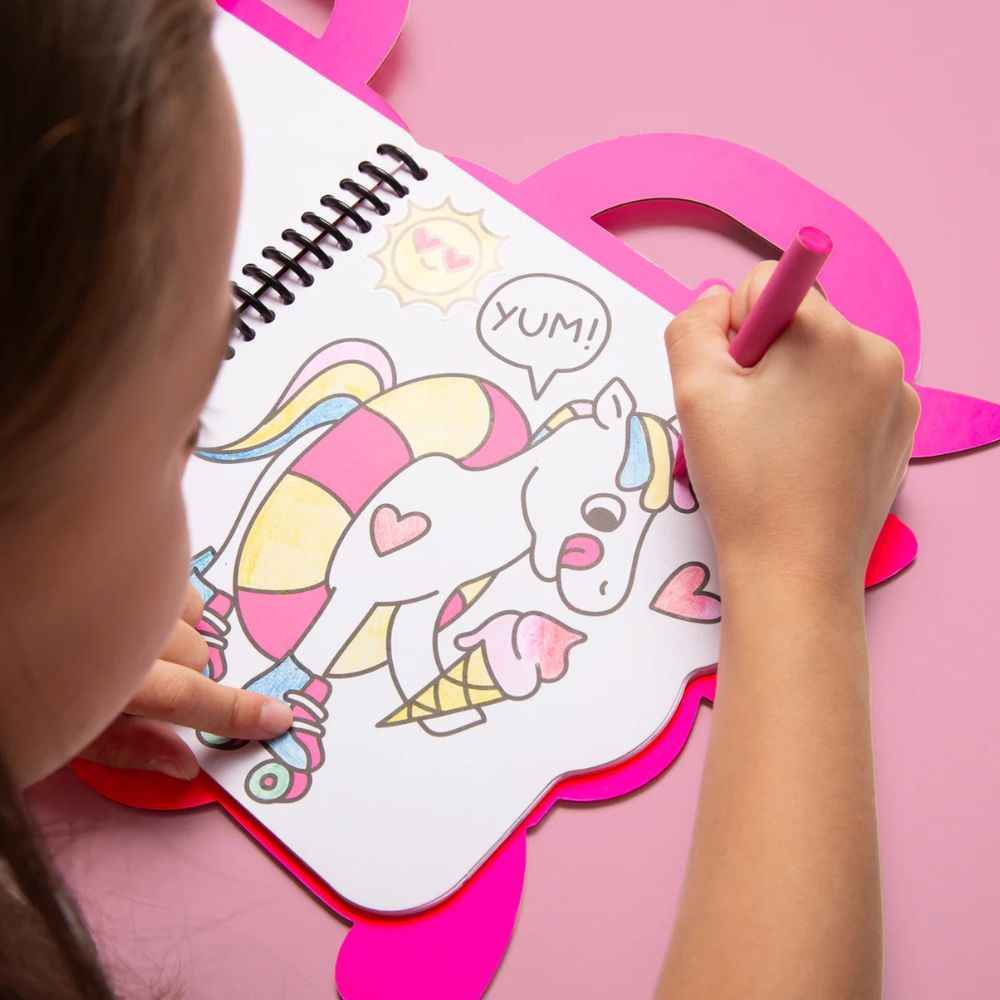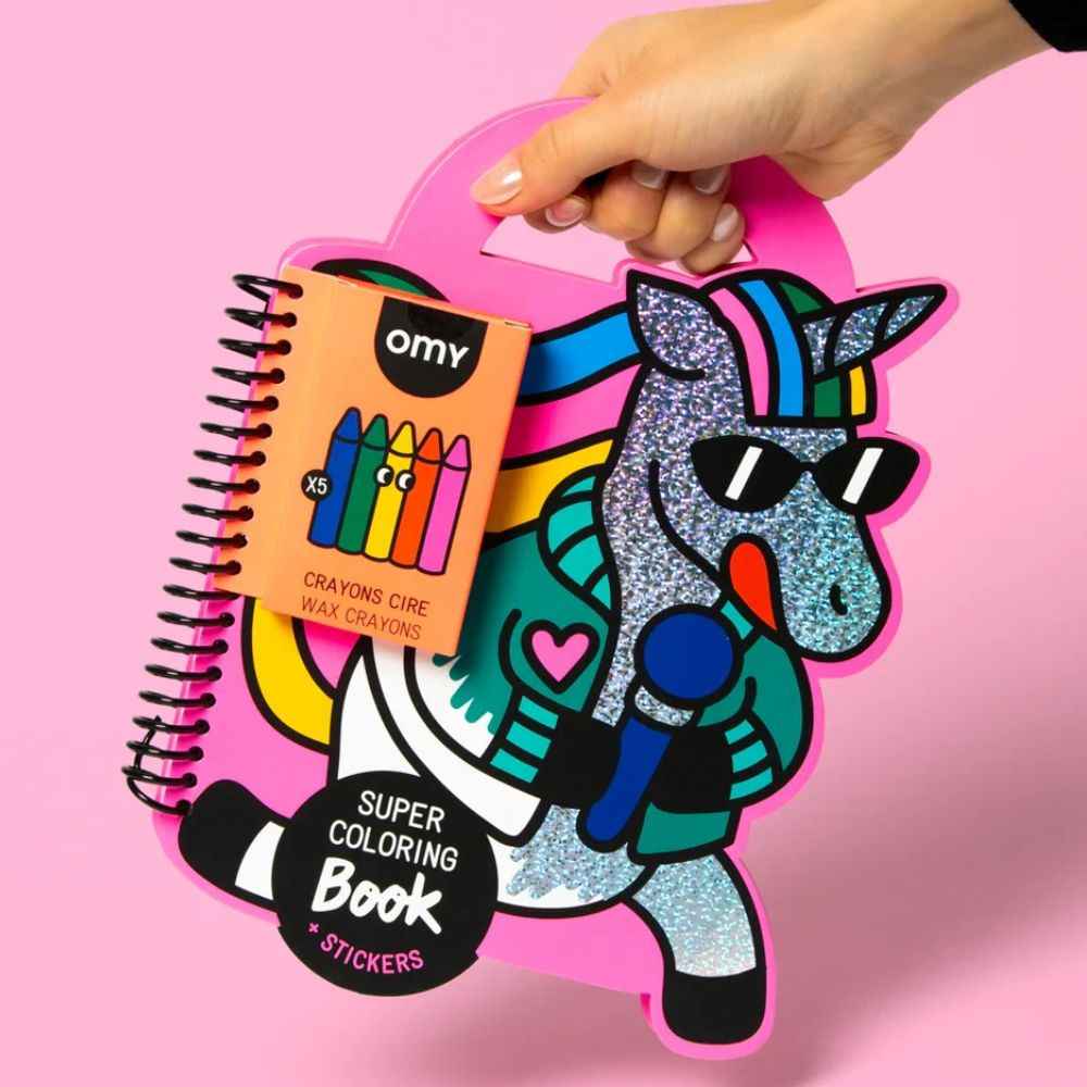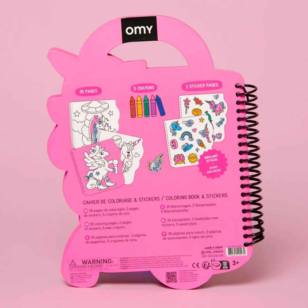 OMY – Malbuch „Lily, das Einhorn“ mit Aufklebern und Buntstiften – eine magische Reise in die Welt der Fantasie!