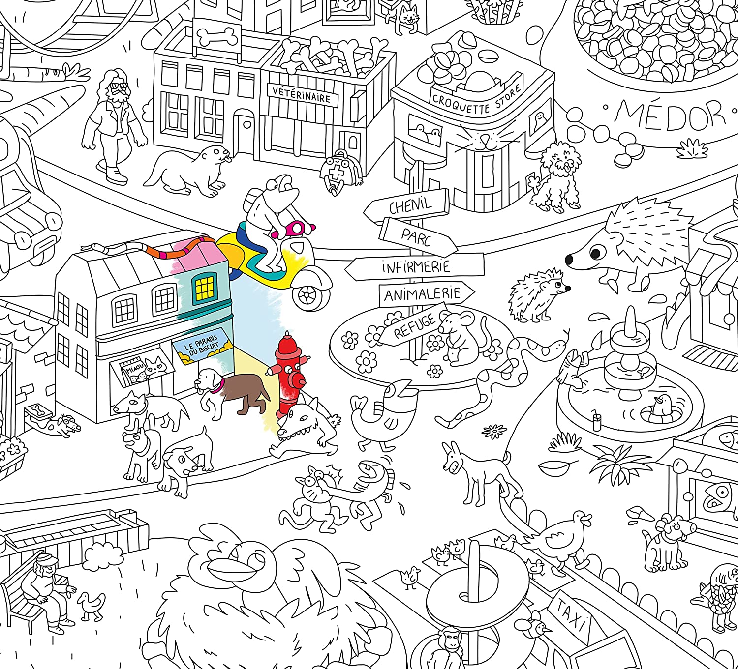 Dieses Riesenposter wurde für alle Tierliebhaber geschaffen. Große Ohren, kleine Pfoten und weiches Fell.... wie kann man diesen bezaubernden Haustieren widerstehen? Machen wir einen Ausflug in die Stadt der kleinen Haustiere. Jede Menge Details zum Ausmalen mit einzigartigem Humor!