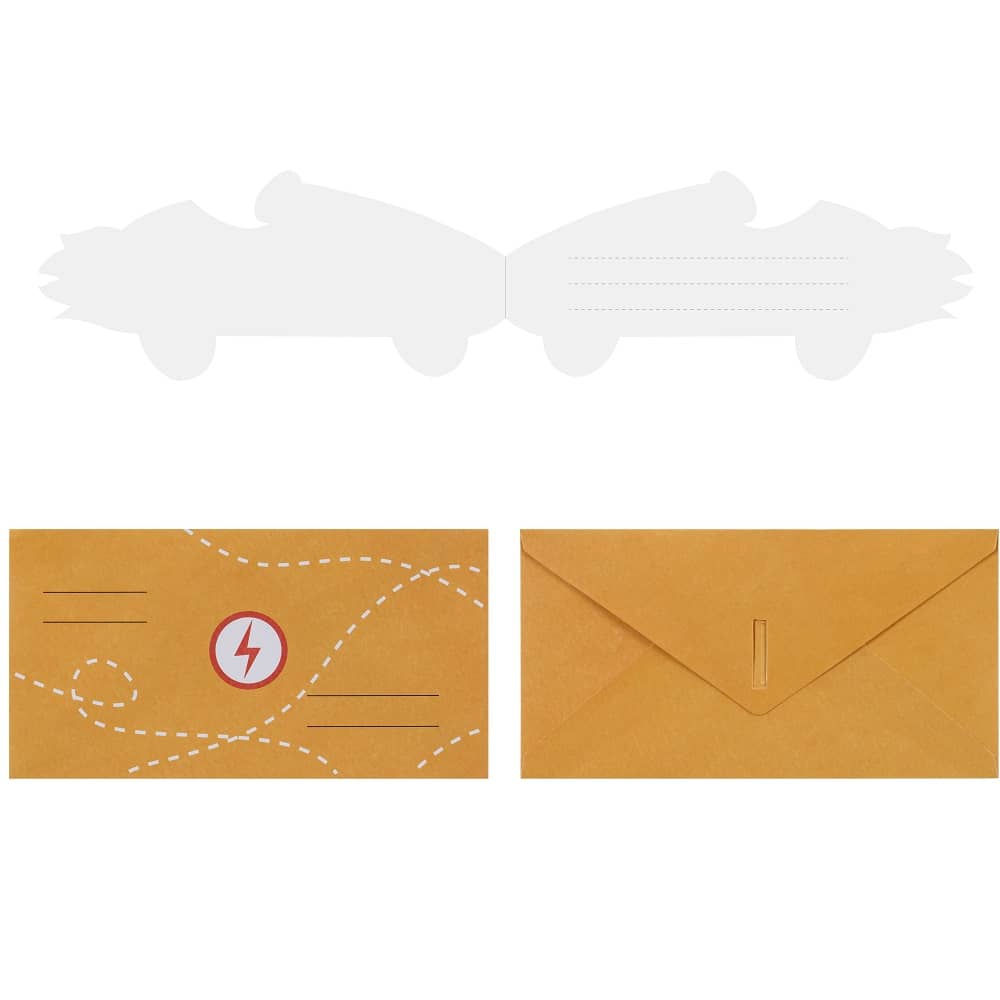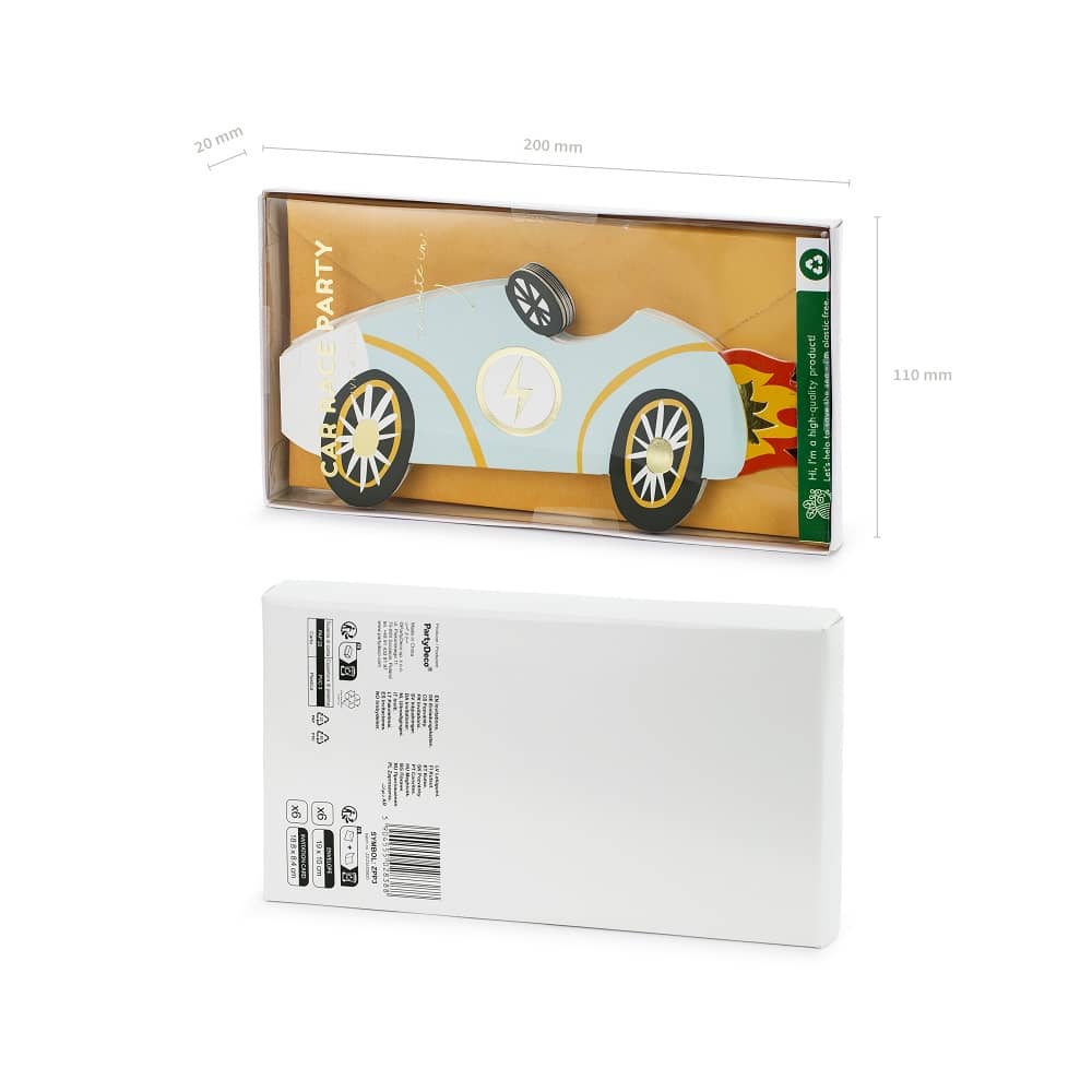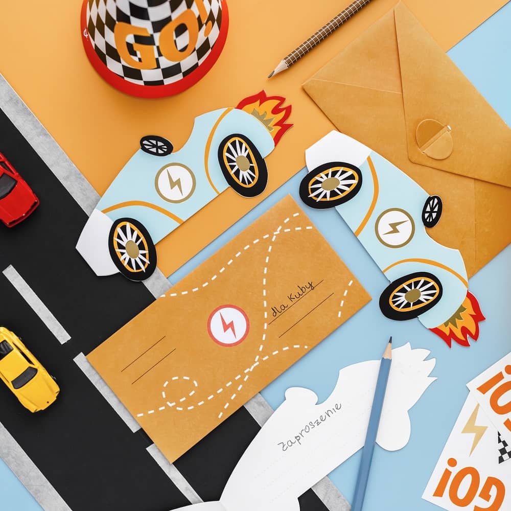 - Einladungen Rennwagen aus Papier ohne Kunststoffzusatz.