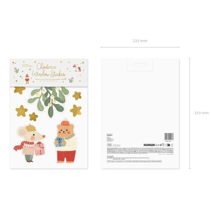 Bunte Fensteraufkleber mit Weihnachtsmotiven auf 4 Bögen. Das Set enthält 40 Aufkleber in 11 Designs.