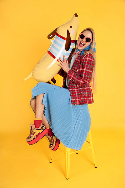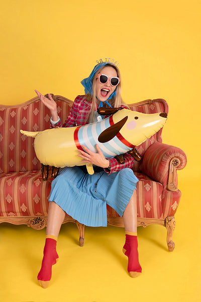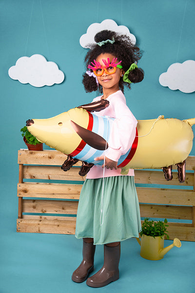 Es eignet sich hervorragend als Dekoration, zum Beispiel für eine Geburtstagsfeier. Mattes Folienballon in Form eines niedlichen Hundes.