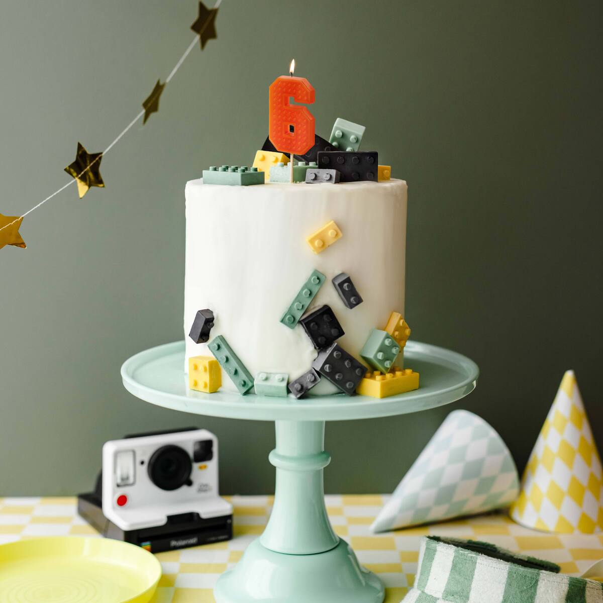 Geburtstagskerze Ziffer 6 in Form eines roten Bauklotzes. Größe ca. 6 cm. Passt zu jeder Geburtstagstorte.