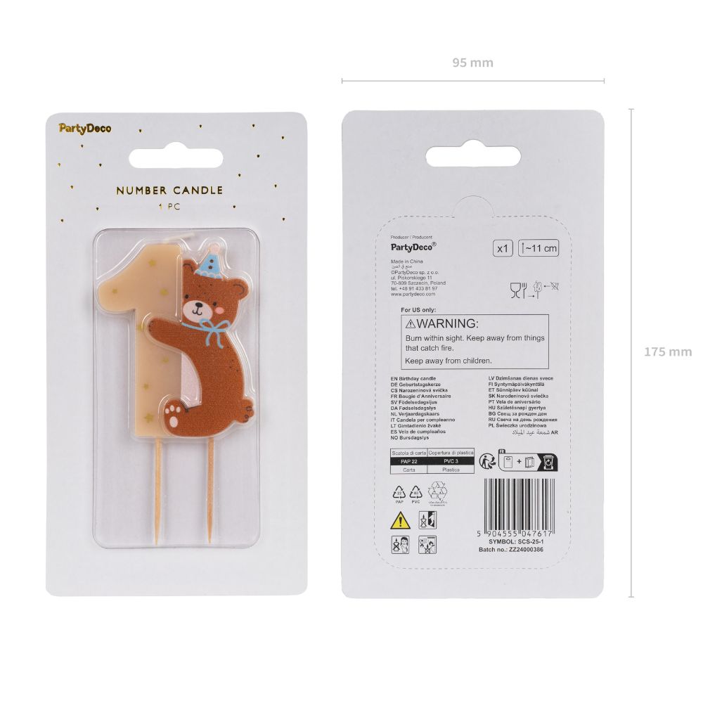 Geburtstagskerze der Marke Party Deco in Form eines niedlichen Bären mit der Zahl „1” ist die perfekte Ergänzung für eine Torte und verleiht der Feier einen besonderen Charakter. Sie eignet sich hervorragend für den ersten Geburtstag und sorgt für eine fröhliche und freundliche Dekoration. Die 7 cm hohe Kerze ist sorgfältig und mit Liebe zum Detail gefertigt, sodass sie sowohl Kinder als auch Erwachsene begeistert.