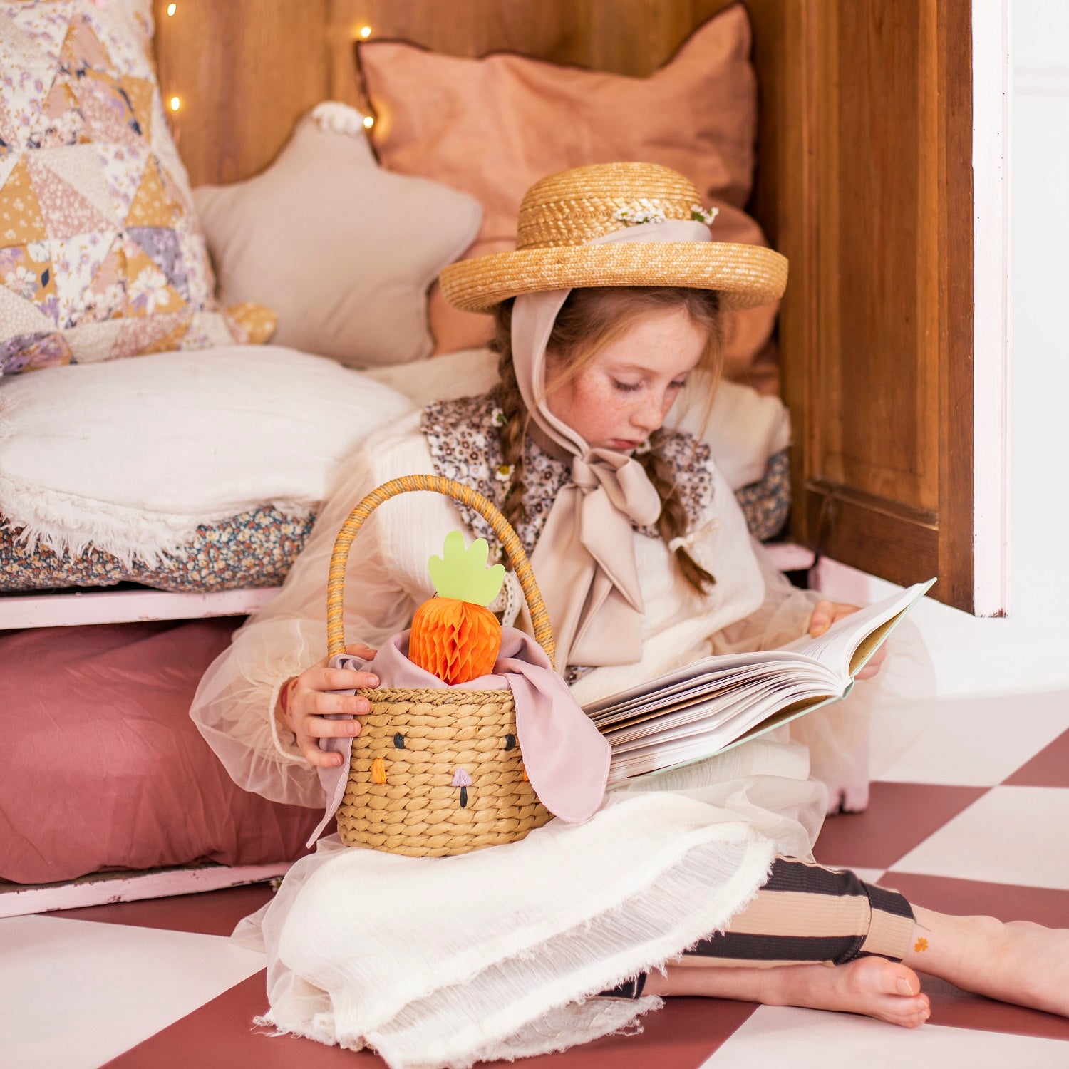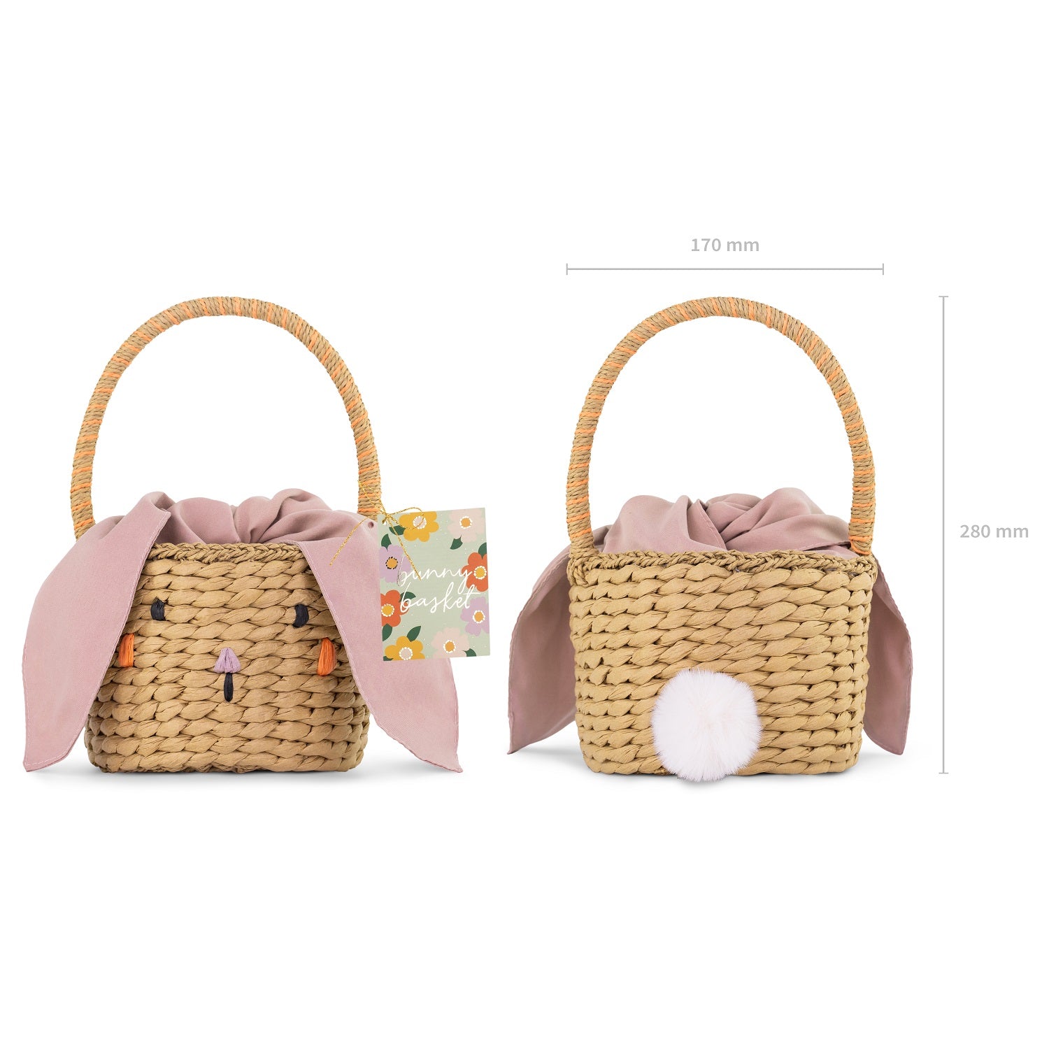 Der bezaubernde Party Deco Hasenkorb – ideal für Frühlingsspaziergänge und Schatzsuchen! Hergestellt aus strapazierfähigem Papiergeflecht, mit weichen Ohren und einem flauschigen Schwänzchen.
