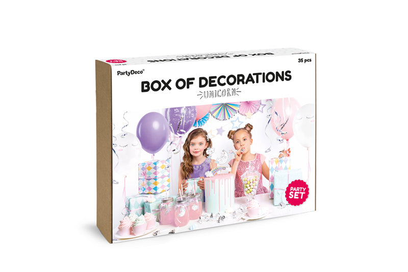 Das Party-Dekorationsset „Einhorn“ von Party Deco enthält 35 Elemente, mit denen Sie eine großartige Party zum Thema Einhorn gestalten können. Mit dem Set von Party Deco sind Sie praktisch schon bereit für die Party!