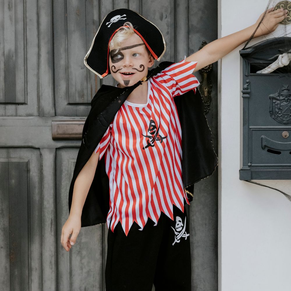 Pirat-Kostüm mit Umhang – Größe 116–128 cm (5–8 Jahre)