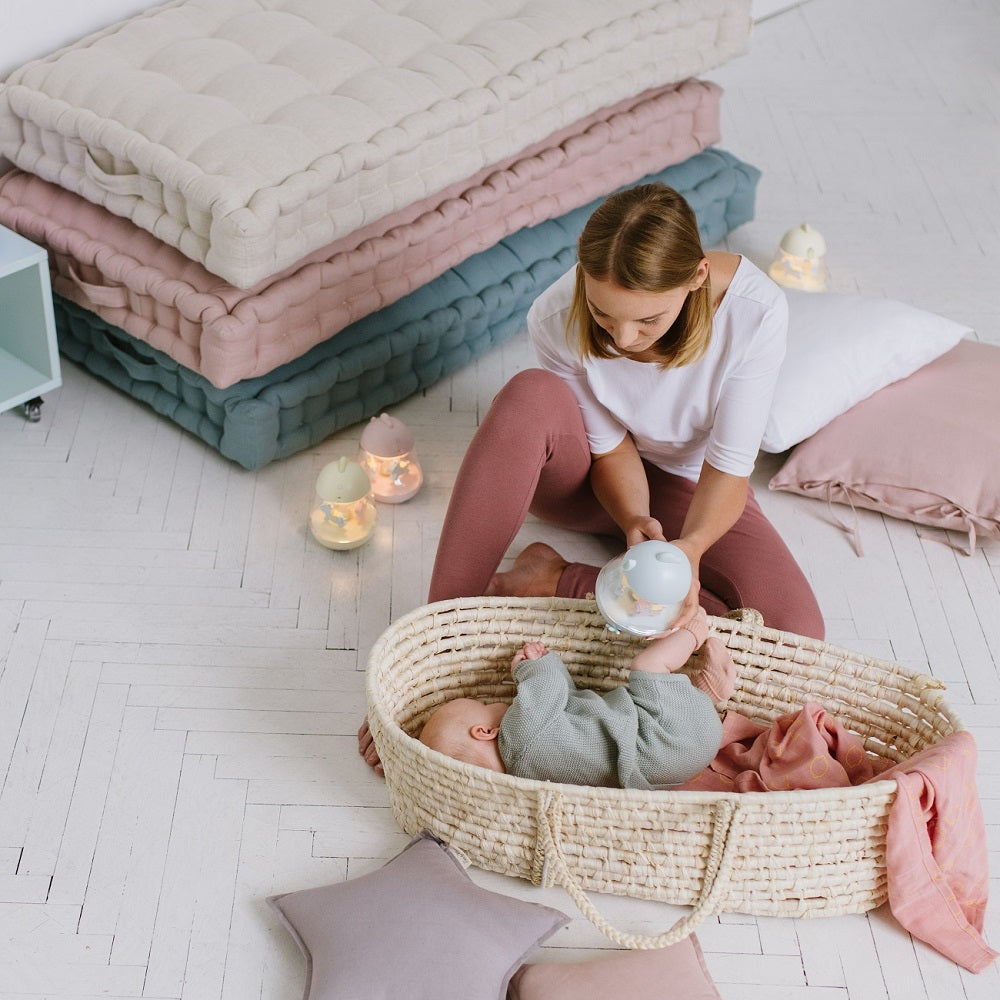 Die Lampe hilft dem Kind beim Einschlafen im Rhythmus der beruhigenden Klänge der Spieluhr und des gleichmäßig drehenden Karussells mit drei niedlichen Pferdchen. Die Melodie der Spieluhr ist sehr sanft und ruhig. Das Licht der Lampe schafft eine einzigartige, harmonische Atmosphäre im Raum, die von sanftem Licht erfüllt ist. In den Nachtstunden erleichtert sie die Betreuung der Kleinsten, das Windelwechseln und das Stillen. Die Lampe besteht aus Materialien, die sich angenehm anfühlen. Die beiliegende polnischsprachige Anleitung hilft bei der einfachen Bedienung. Das Aufladen erfolgt über das dem Produkt beiliegende USB-Kabel. Der Akku reicht nach dem Aufladen für etwa 24 Stunden. Die Lampe schaltet sich nach etwa 8 Stunden automatisch aus, um Energie zu sparen.