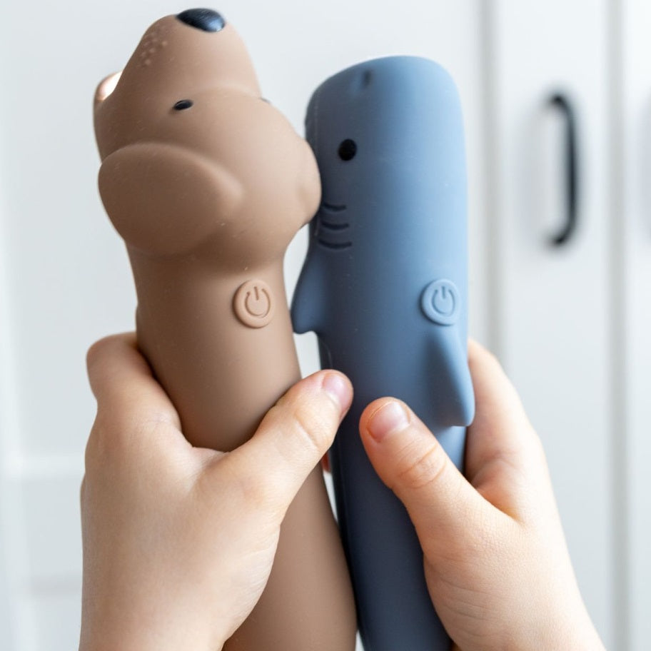 Entdecken Sie die einzigartige Taschenlampe in Form eines niedlichen Hundes von Rabbit & Friends – die perfekte Kombination aus Spaß und Funktionalität. Sie besteht aus weichem Silikon, passt sich perfekt an die Hände kleiner Entdecker an und dank ihrer Helligkeitsregelung kann das Licht an die Bedürfnisse jedes Abenteuers angepasst werden. Ideal für abendliche Geschichten, Schattenspiele oder zum Ausleuchten nächtlicher Ecken.
