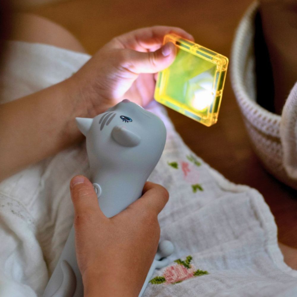 Entdecken Sie die einzigartige Taschenlampe in Form einer niedlichen Katze von Rabbit & Friends – die perfekte Kombination aus Spaß und Funktionalität. Sie besteht aus weichem Silikon, passt sich perfekt an die Hände kleiner Entdecker an und dank ihrer Helligkeitsregelung kann das Licht an die Bedürfnisse jedes Abenteuers angepasst werden. Ideal für abendliche Geschichten, Schattenspiele oder zum Ausleuchten nächtlicher Ecken.