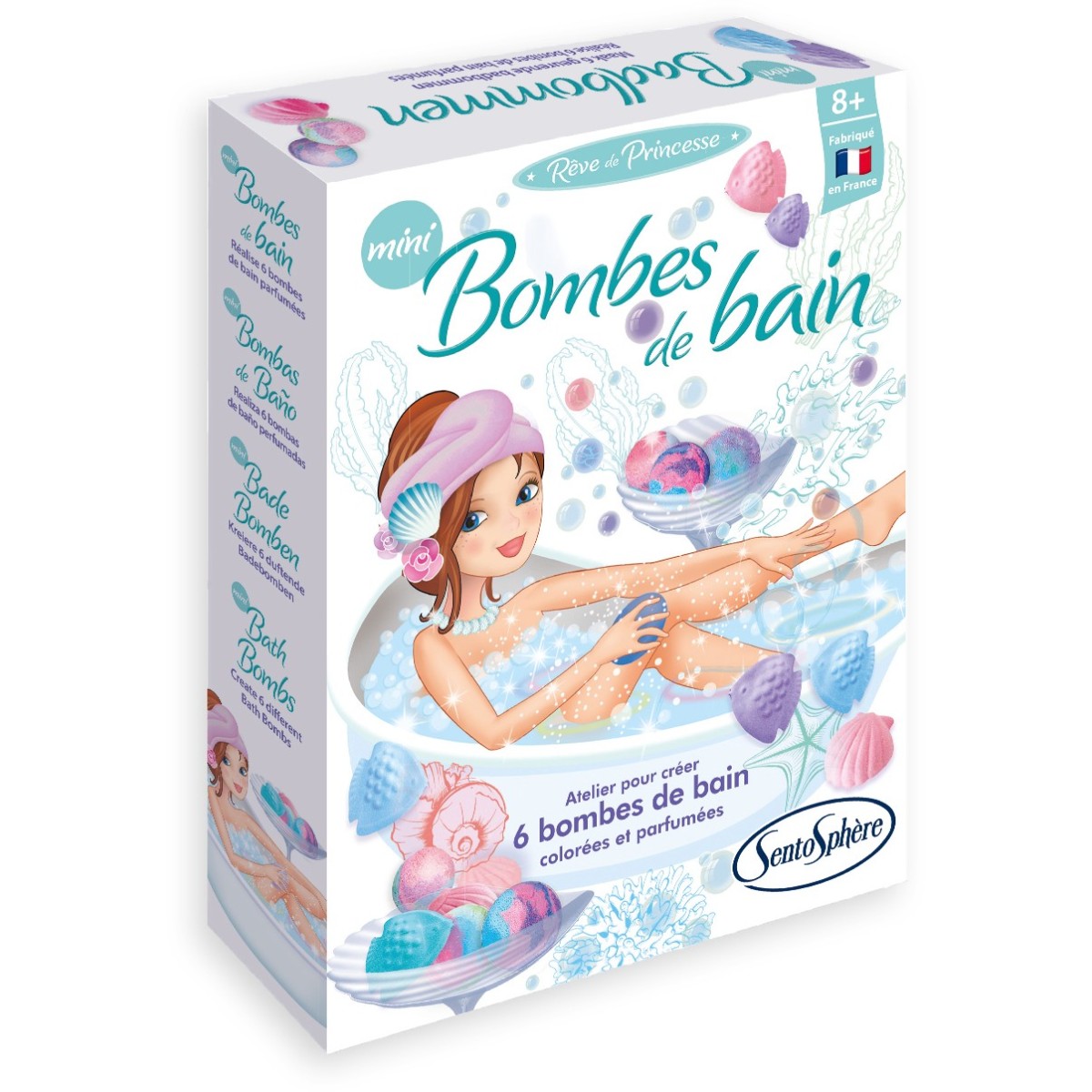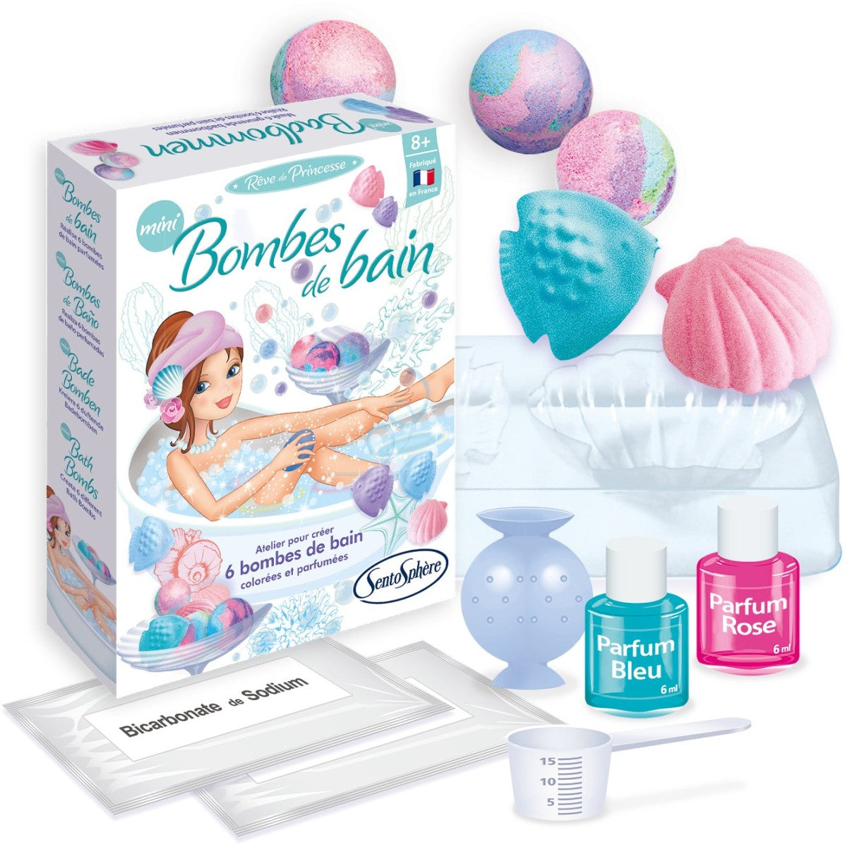 Mini Kreativset für Mädchen ab 8 Jahren, dient zur eigenständigen Herstellung von Badekugeln zu Hause. Die Kugeln sind duftend und enthalten Farbstoffe. Das Set ist in Frankreich aus zertifizierten und sicheren Zutaten hergestellt. Im Set enthalten sind zwei duftende Farbstoffe, eine Form und Pipetten sowie die notwendigen Mischungen auf Basis von Säure und Natron. Abmessungen der Verpackung: 13 x 17,5 x 4 cm.