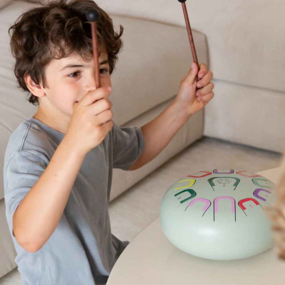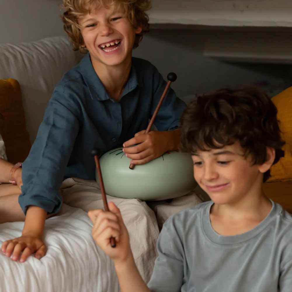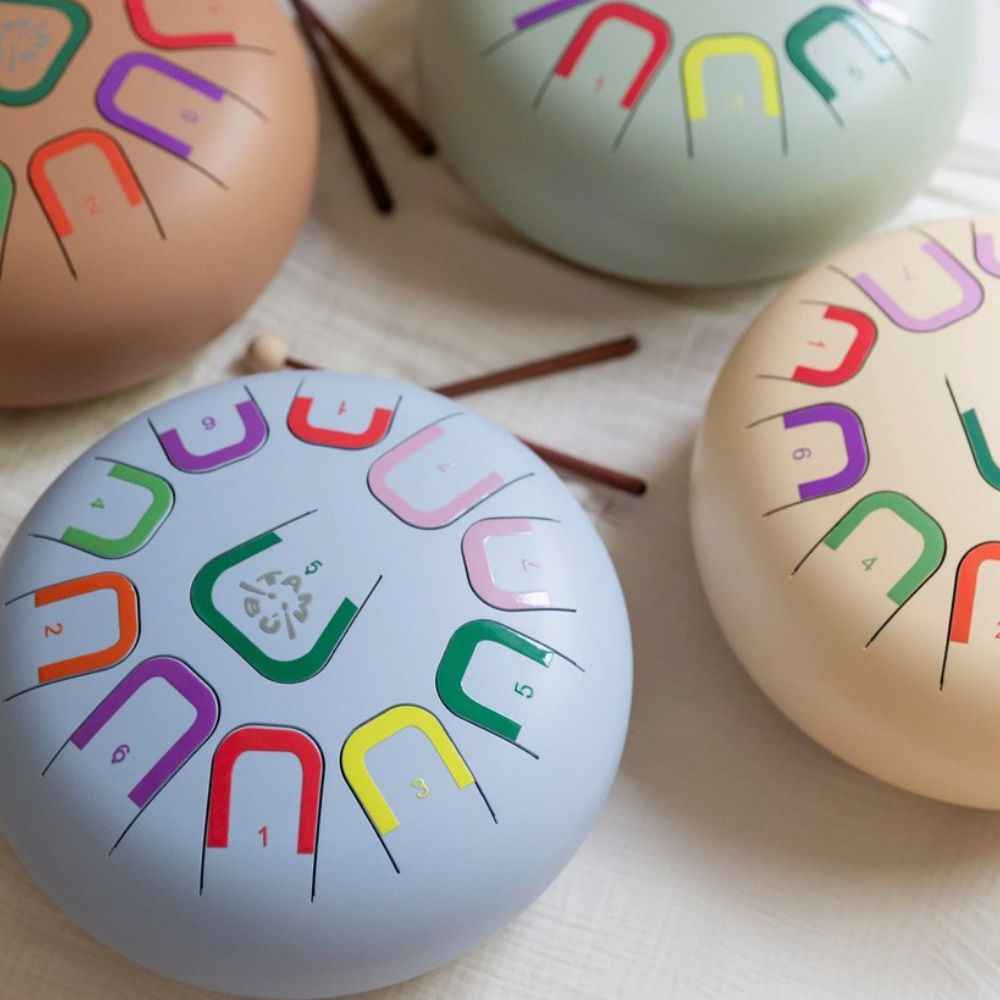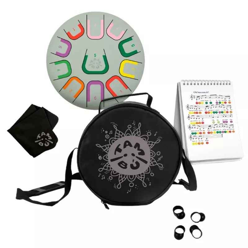 Tambu ist eine Art melodisches Tong Drum, das dich in die faszinierende Welt der Klangspiele einführt. Tambu ist ein kompakter, runder Stahl-Tong Drum mit einem Durchmesser von 10 Zoll (25 cm), der 11 Töne verbirgt. Die gesamte Welt der Melodien liegt in deiner Hand. Lass dich von seinem samtigen und entspannenden Klang überraschen und entdecke das künstlerische Talent in dir oder bei deinem Kind!