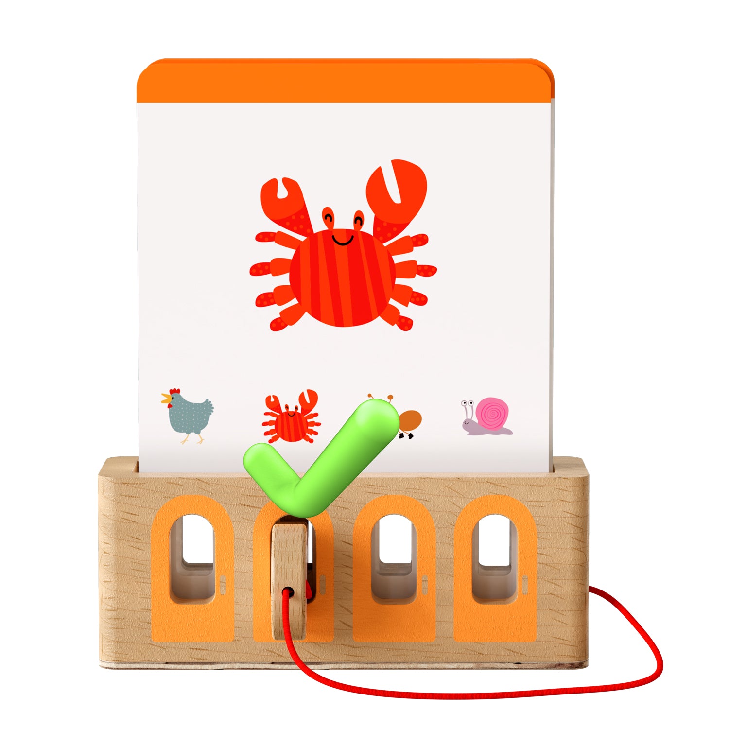 Das Spielprinzip ist einfach und motivierend – das Kind löst Aufgaben auf speziellen Karten, wählt eine Antwort und überprüft sie mit dem magischen Schlüssel. Ist die Antwort richtig, wird die Karte entriegelt – und das Kind erlebt mit Freude den Erfolg seiner Arbeit! Eine perfekte Verbindung von Spiel und Lernen, ganz im Sinne der Montessori-Methode – ohne Bildschirme, Batterien oder Lärm, dafür mit viel Konzentration und Zufriedenheit.