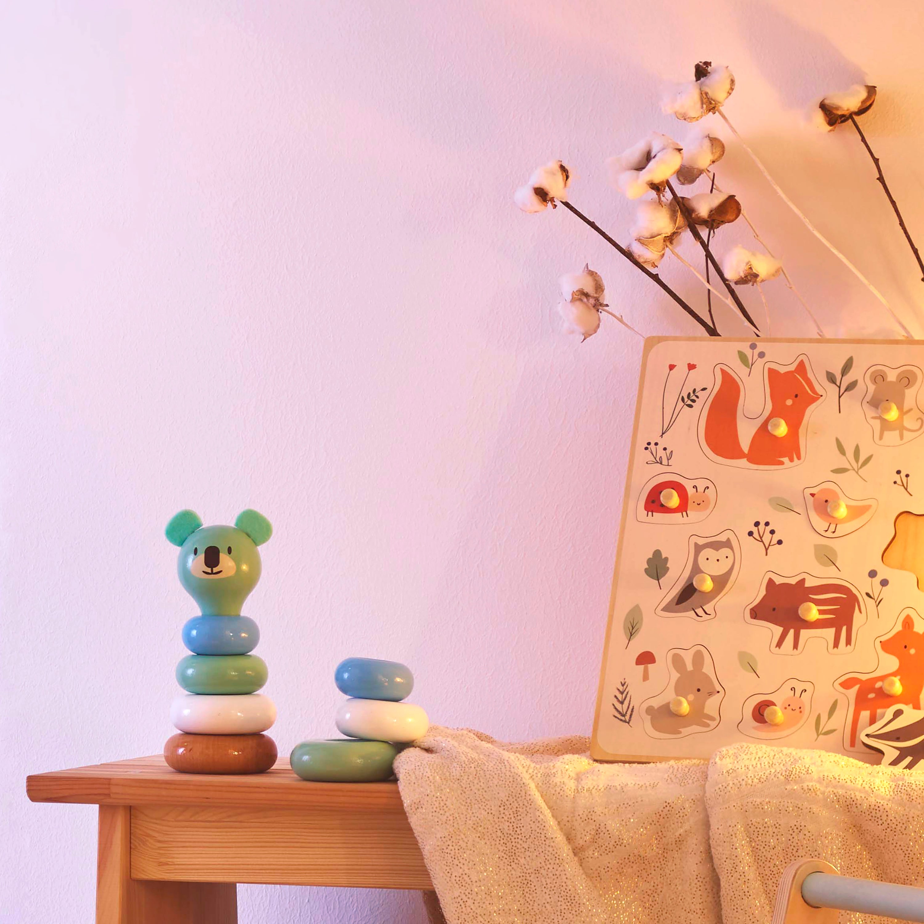 Das Holzpuzzle regt das Kind zu sensorischem und pädagogischem Lernen an . Indem es jedes Element an seinen Platz im Puzzle einfügt, lernt das Kind, Tiere zu erkennen. Sie können jedes Tier benennen, um den Wortschatz und das Wissen Ihres Kindes über die Welt um es herum zu erweitern. Das Puzzle der Marke Vilac fördert die kognitive Entwicklung Ihres Kindes und ermöglicht ihm verschiedene Formen und Farben entdecken kann . Durch das Manipulieren der Holzelemente kann das Kind seine Hand-Augen-Koordination und seine motorischen Fähigkeiten entwickeln, die in dieser Entwicklungsphase unerlässlich sind. Das Zusammensetzen solcher Puzzles verbessert auch die Problemlösungsfähigkeiten, da das Kind die Formen identifizieren und sie an die richtigen Stellen anpassen muss. Kleine bunte Punkte auf der Unterseite, die die vorherrschende Farbe des jeweiligen Tieres widerspiegeln, helfen den Kleinen beim Zuordnen.
