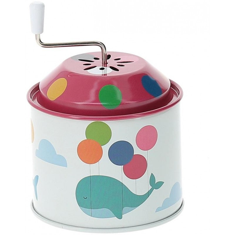Das farbenfrohe Musikinstrument ist mit einer originellen Grafik verziert, die einen niedlichen Wal zeigt, der auf bunten Luftballons schwebt.